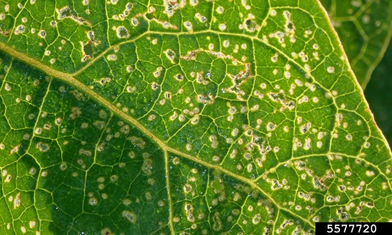 Es un insecto que chupa los jugos de la planta, provocando manchas y deformaciones en las hojas.